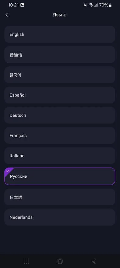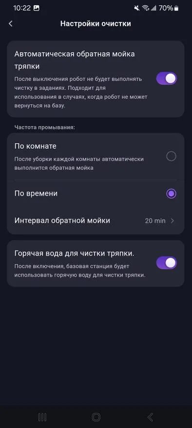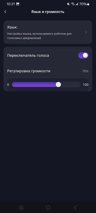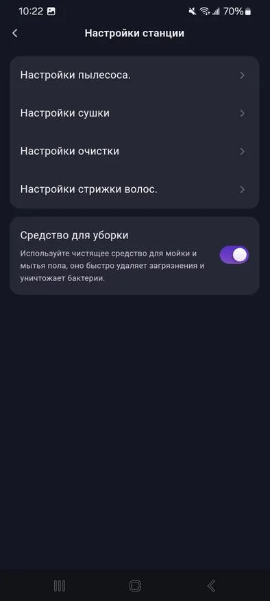 Настроек в приложении действительно много. Есть отдельные настройки для уборки, для станции, для навигации. Можно выбрать русский язык — он уже присутствует в приложении, ничего дополнительно устанавливать не придется.