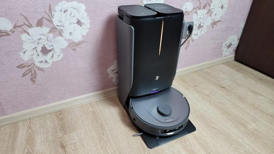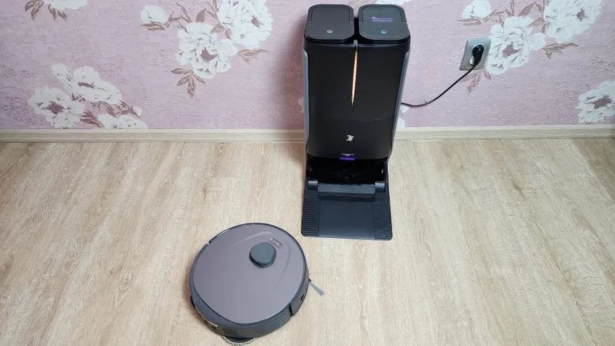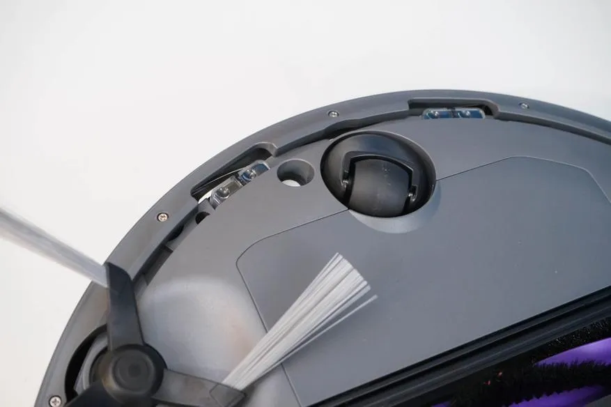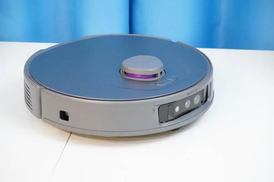 Если говорить про форм-фактор самого робота, тот тут все более или менее привычно. Это плоский «блинчик» диаметром 350 миллиметров и высотой около 100 миллиметров. Сам корпус значительно ниже, но вверх выдается «башенка"-надстройка с системой лазерного сканирования (с лидаром). Интерес вызывает фронтальная панель, на которой располагаются сразу несколько сенсоров — сдвоенная камера с ИИ-функциями распознавания и специальная подсветка. Такое решение, в купе с контактными и неконтактными сенсорами, позволяет строить объемную карту помещения, определять расстояния до препятствий, ориентироваться в помещении, а также находить место остановки. Предусмотрена функция установки зон, например, запретных для влажной уборки. Задняя панель оснащается широкими электрическими контактами для подключения к зарядной станции, также имеется место подключения штуцера для подачи воды, а также клапан системы удаления мусора.