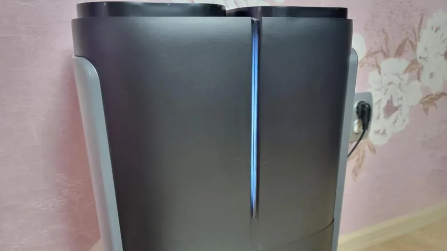 Индикация выполнена интересным способом — это дизайнерская вставка в центре корпуса станции, вертикальная, с плавной сменой цветов и уровня свечения. При работе не раздражает. Цветом показывает ошибки, например, переполнение резервуара.