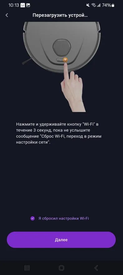 Для этого сканируем QR-код под крышкой робота, либо добавляем из списка в приложении вручную. Сам робот надо «сбросить» — перевести в режим работы в качестве точки доступа. После добавления (потребуется ввести домашнюю WiFi сеть и пароль для доступа) проверяем обновления встроенного ПО.