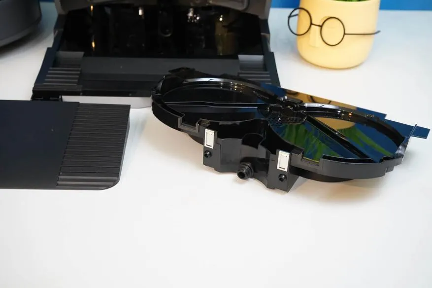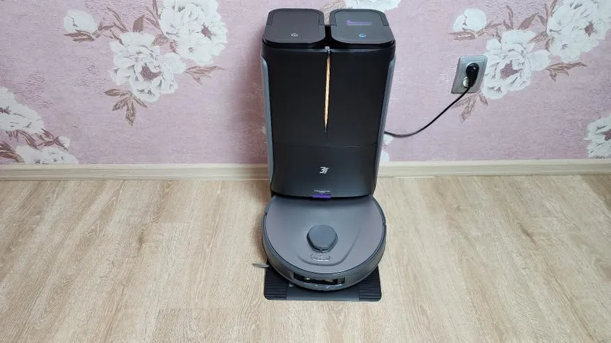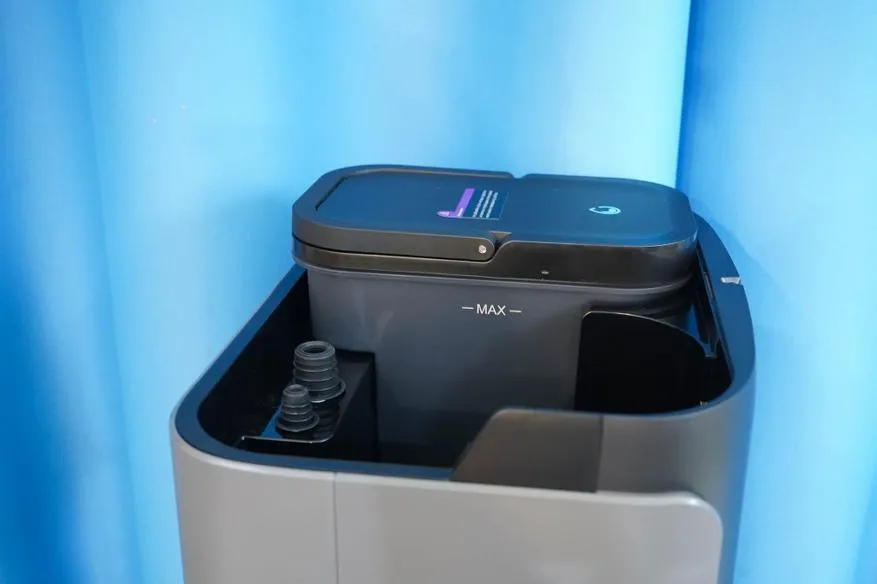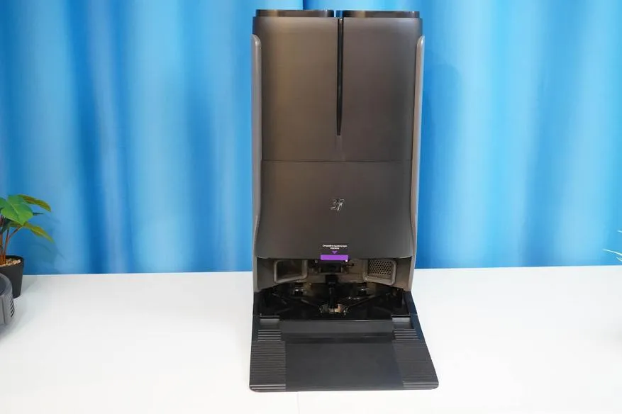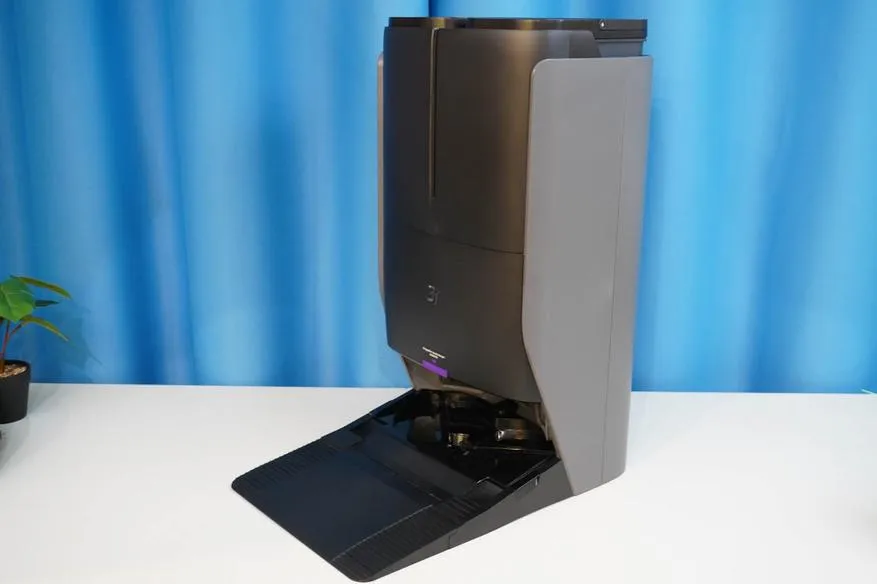 К слову, подиум для заезда потребовался из-за приподнятого профиля станции. В углублении сделан целый комплект для обслуживания робота — зарядка, мойка водой (с вращением мопов и откачиванием грязной воды). Специальный лоток имеет «гребенку» или «тёрку» для более качественной очистки мопов, а вся грязная вода собирается из углубления и откачивается в отдельный резервуар. Сам лоток можно периодически извлекать и промывать от остатков грязи.