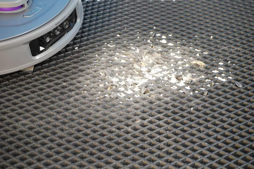 Силы всасывания достаточно с запасом, что бы извлекать мусор из углублений EVA коврика. Напомню, у робота заявлено 18000 Па в максимуме. Соответственно, при обычной уборке (средний уровень) сила всасывания несколько меньше. Но и шум зависит от установленных настроек силы всасывания — учитывайте это при выборе типа уборки.