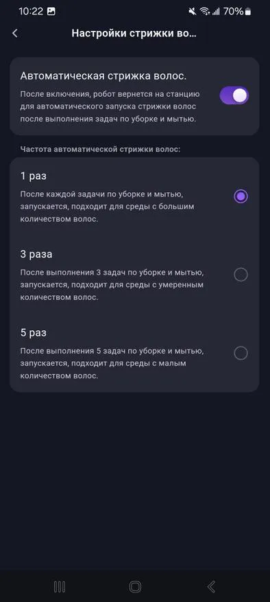 Мне было интересно, каким же образом реализовано срезание волос в этом модели станции самоочистки. Оказывается, в самом подиуме располагается небольшая система с острым ножом и ременным приводом. При заезде на станцию нож как бы «пробегает» справа налево, срезая волосы с ролика. Срезанное либо «улетает» при самоочистке в мусорный мешок, либо собирается с поддона вместе с грязной водой. Сама по себе реализация интересная, пока не могу сказать ничего негативного — работает. Но по привычке проверяю ролик примерно раз в неделю (особенно подшипники по бокам ролика).