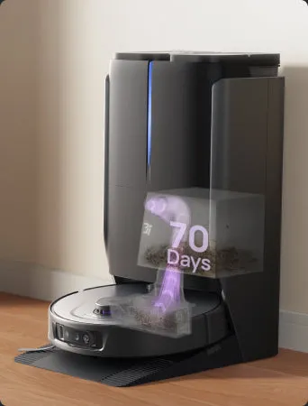 Автоматически опорожняет пылесборник робота в просторный мешок объемом 3 л, обеспечивая 70 дней уборки без участия пользователя*.